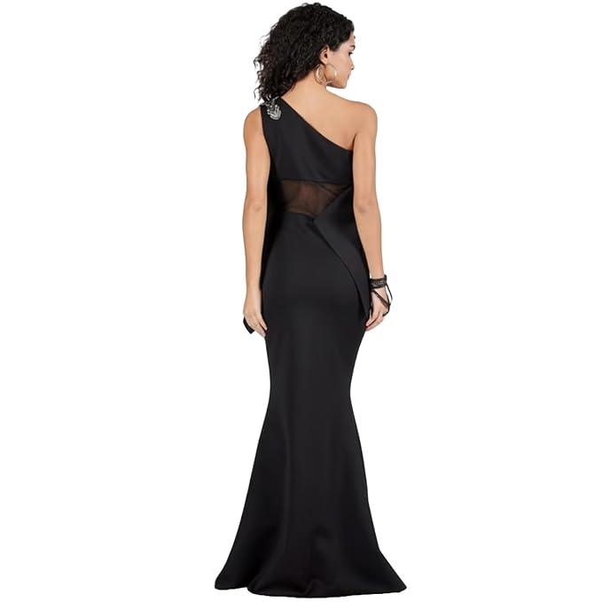 - Elegant Design: A stunning one-shoulder saree gown crafted from luxurious black neoprene fabric with intricate embellishments.