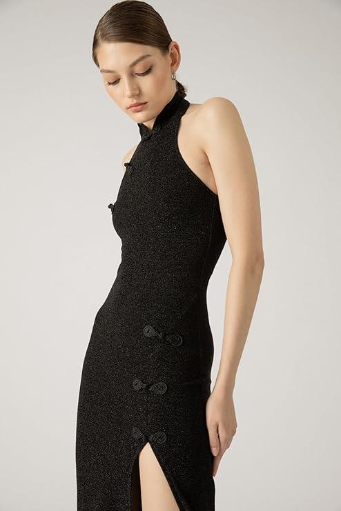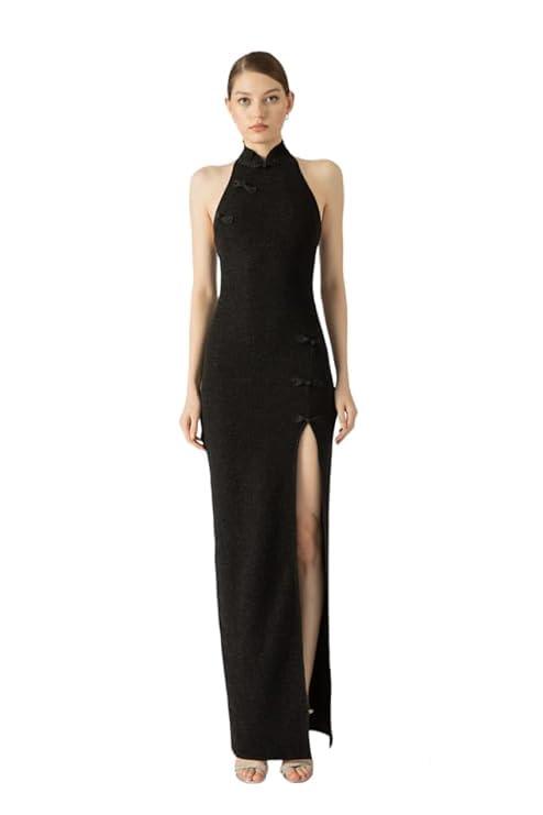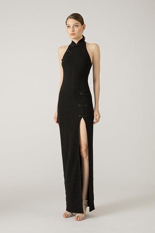 Harliv Shimmer Women Lurex Maxi Dress Side Slit Black