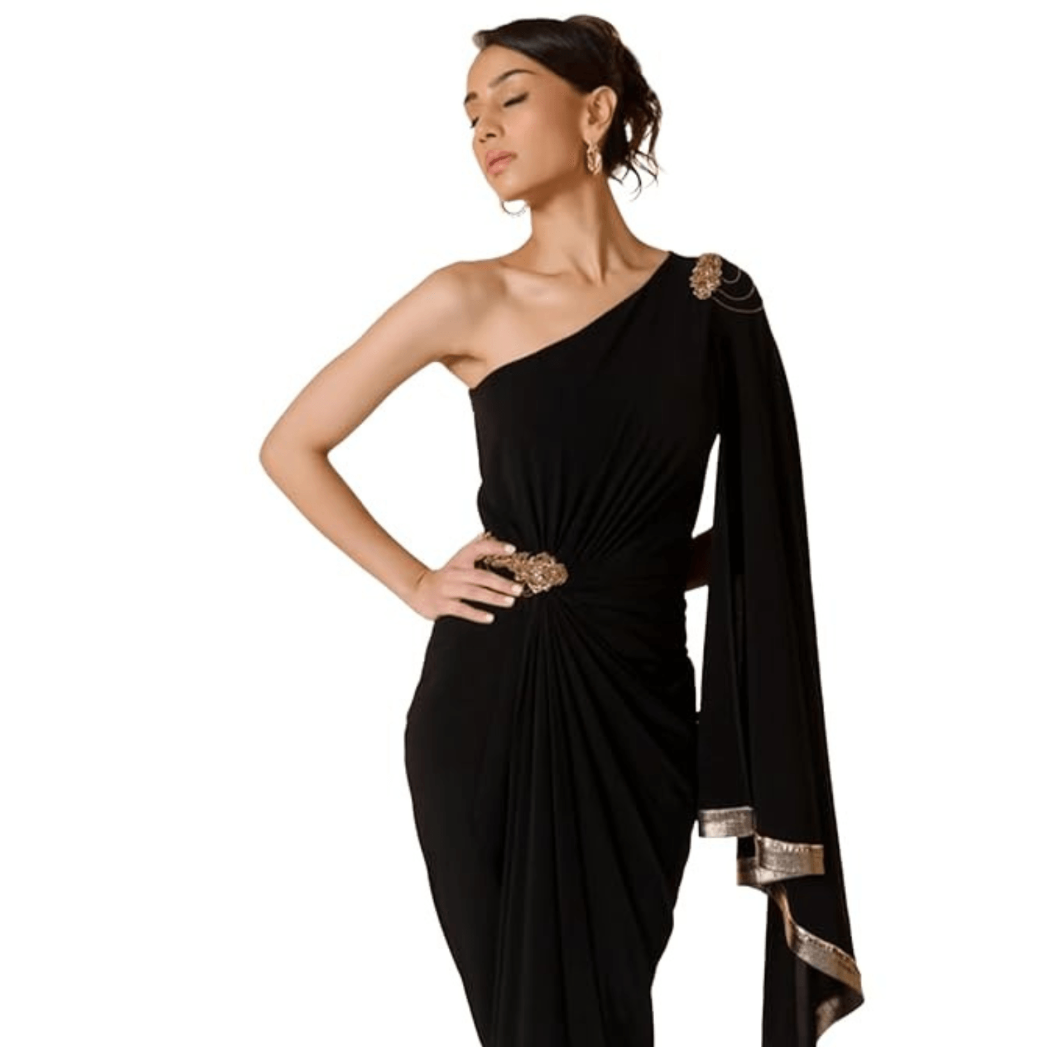 - One-Shoulder Design: Adds a touch of contemporary elegance to a traditional saree silhouette.